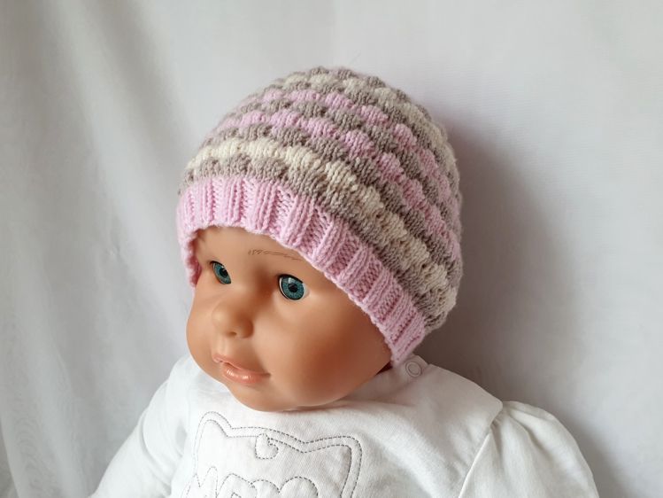 Strickanleitung Baby-Mütze ca. 4 - 10 Monate Für diese Baby-Mütze werden lediglich ca. 40 g Wolle mit einer Lauflänge von ca. 175 m / 50 g benötigt. Hier wurde Baby Merino von Drops verwendet. Ideal für etwas geübte Strickerinnen mit Grundkenntnissen, die mit dem Nadelspiel vertraut sind. In der detaillierten Schritt-für-Schritt-Anleitung wird jede Reihe vom Bündchen bis zu den Abnahmen genau erklärt.