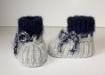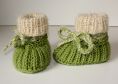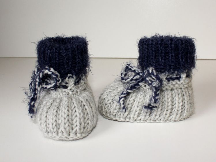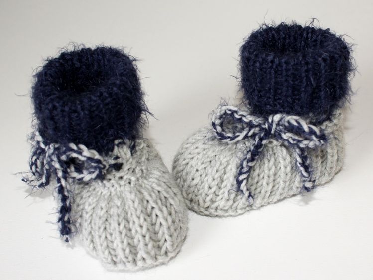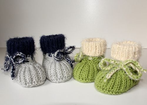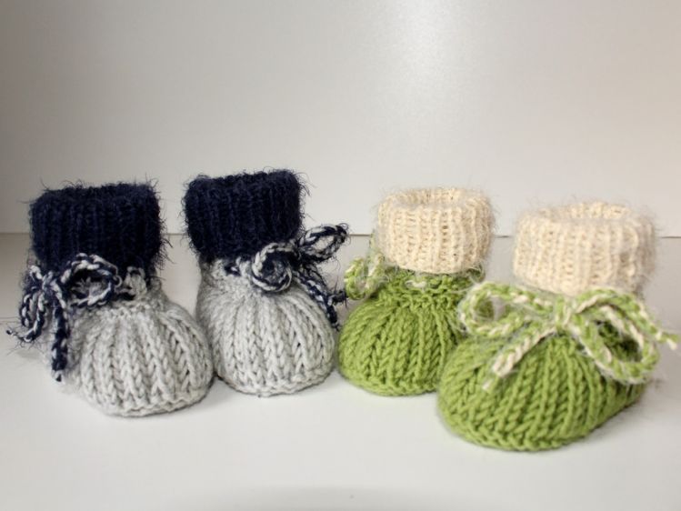 Strickanleitung für Baby-Schuhe, Schühchen, Booties. Gerade bei den Allerkleinsten ist es wichtig, dass die Füsschen schön warm gehalten werden. Dies gelingt am Besten mit Baby-Schuhen aus Merino-Wolle. Die detaillierte Schritt-für-Schritt-Anleitung beschreibt jede zu strickende Runde ganz genau. Geeignet für etwas geübte Strickerinnen, die mit dem Nadelspiel vertraut sind. Die Anleitung beinhaltet 2 Größen - ca. 9 cm Sohlenlänge und ca. 10 cm Sohlenlänge. Benötigt werden ca. 30 - 40 g Wolle mit einer Lauflänge von ca. 120 m / 50 g, wie z. B. Cool Wool Big von Lana Grossa. Evtl. für das Bündchen ein Effektgarn - ist aber nicht zwingend notwendig.