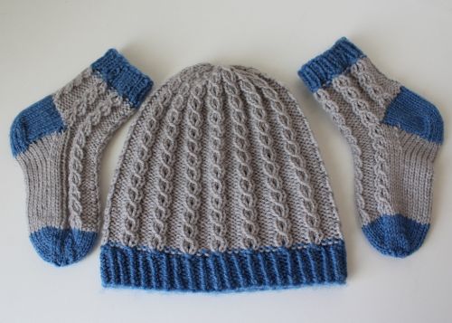 Strickanleitung Baby-Set, Mütze und Socken, kleines Zopfmuster, ca. 3 - 10 Monate