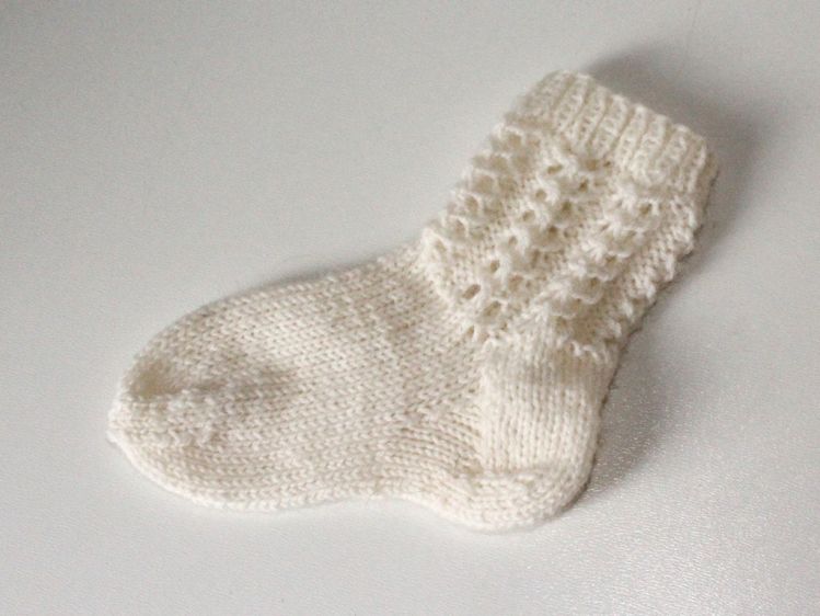 Strickanleitung Babysocken, Babysöckchen, Sohlenlänge 11 cm Hierfür werden lediglich ca. 30 g 4-fach-Sockenwolle benötigt - ideal zur Resteverwertung. Alternativwolle: Cool Wool Merino Baby von Lang Yarns Für geübte Anfänger geeignet.