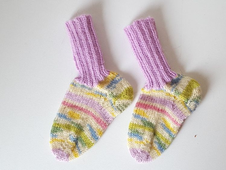 Ideal zur Resteverwertung geeignet sind diese Baby-Söckchen mit langem Bündchen - dieses kann auch umgeschlagen werden.