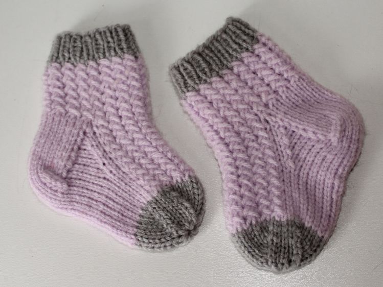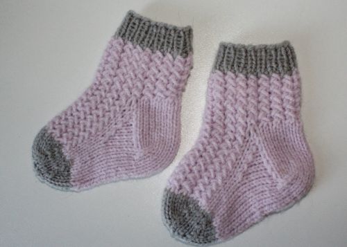 Strickanleitung Babysöckchen im Flechtmuster mit einer Sohlenlänge von ca. 9 cm - somit passend für etwa 0 - 4 Monate Hierfür werden lediglich ca. 20 g Wolle mit einer Lauflänge von ca. 185 m / 50 g benötigt - ideal zur Resteverwertung. Geeignete Wolle: Bravo Baby Smiles von Schachenmayr oder Cool Wool von Lana Gross