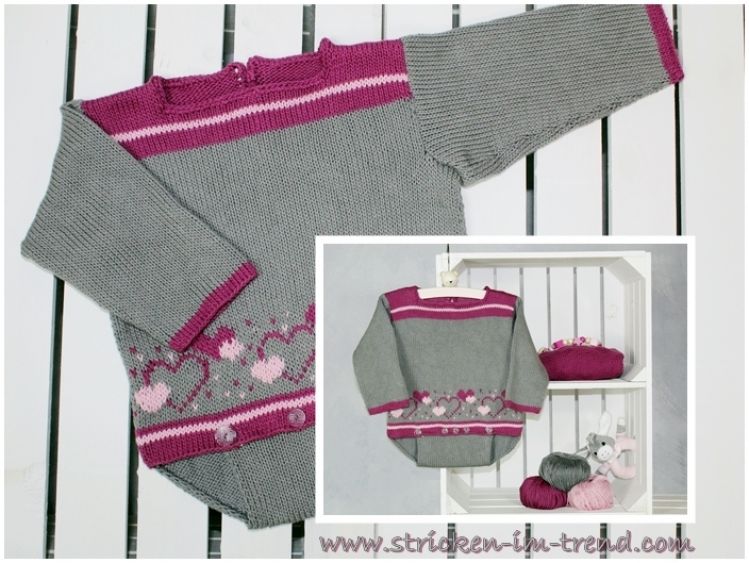 Ihr habt die Wahl - entweder wird das Muster bereits beim Stricken eingearbeitet, oder Ihr stickt es dann einfach auf den fertigen Babybody auf - ganz nach Belieben!