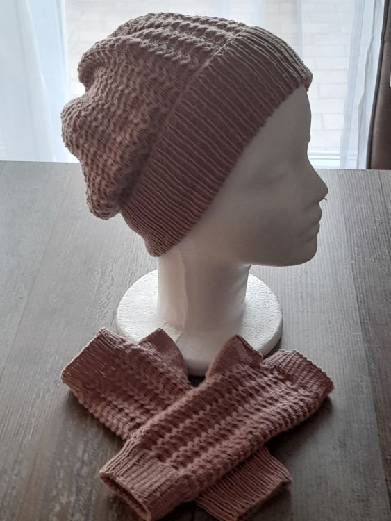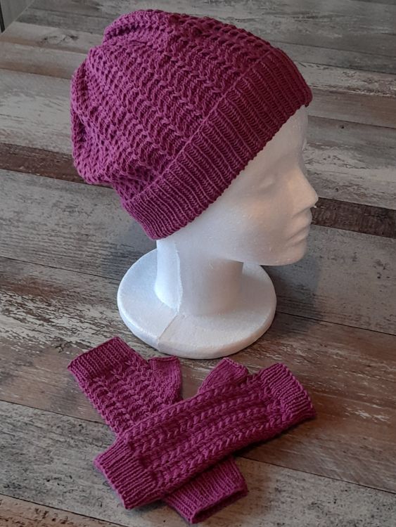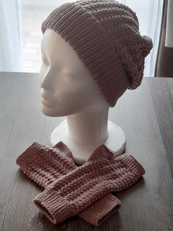 Mütze und Armstulpen, eine Kombination von der Frau im Winter nicht genug haben kann. So ein Set hält nicht nur warm, sondern sieht auch noch chic aus. Diesmal habe ich die Mütze als Beanie gearbeitet, mit einem Muster aus Hebe - und überkreuzten Maschen, das sich natürlich auch bei den Stulpen findet. Da es beim Tragen nicht stört, habe ich es rundherum gearbeitet. Die Stulpen sind außerdem mit Daumenkeil.