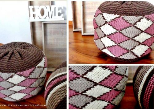Die Größe des fertigen Polsters beträgt im Durchmesser etwa 29 cm und hat eine Höhe von ca. 30 cm.