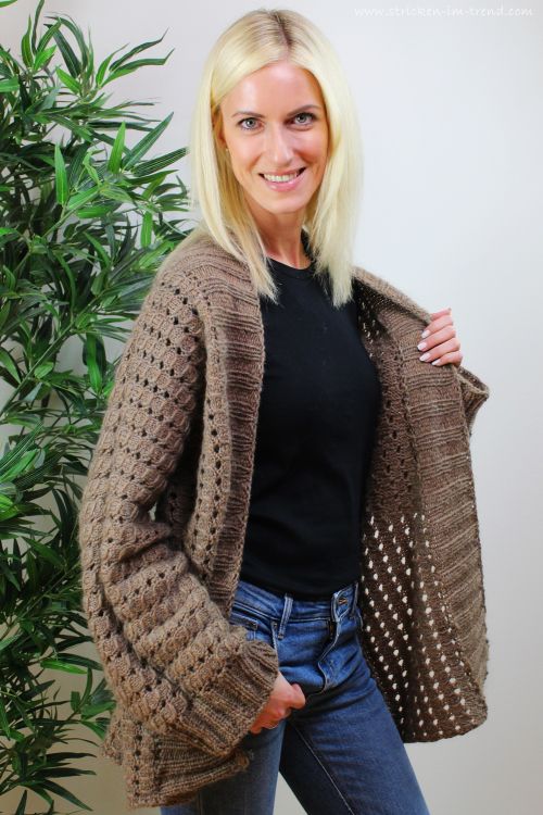 Das luftige Grundmuster bringt Struktur und Leichtigkeit, während das verwendete Garn für Weichheit und Wärme sorgt.