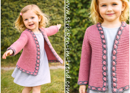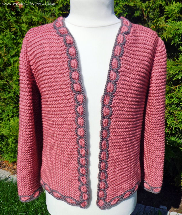 Ein klassischer, liebevoll gestrickter Mädchen-Trachtenjanker mit wunderschöner Borte –