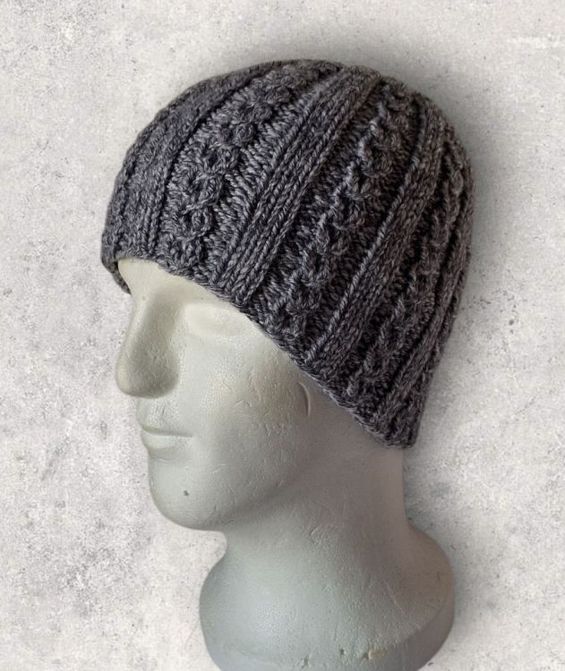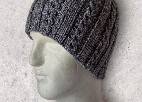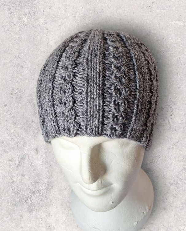 Strickanleitung Herren-Mütze, kleine Zöpfe, KU ca. 56 - 60 cm