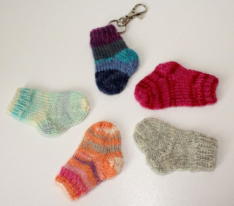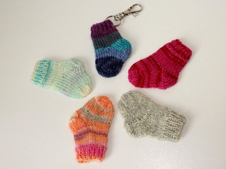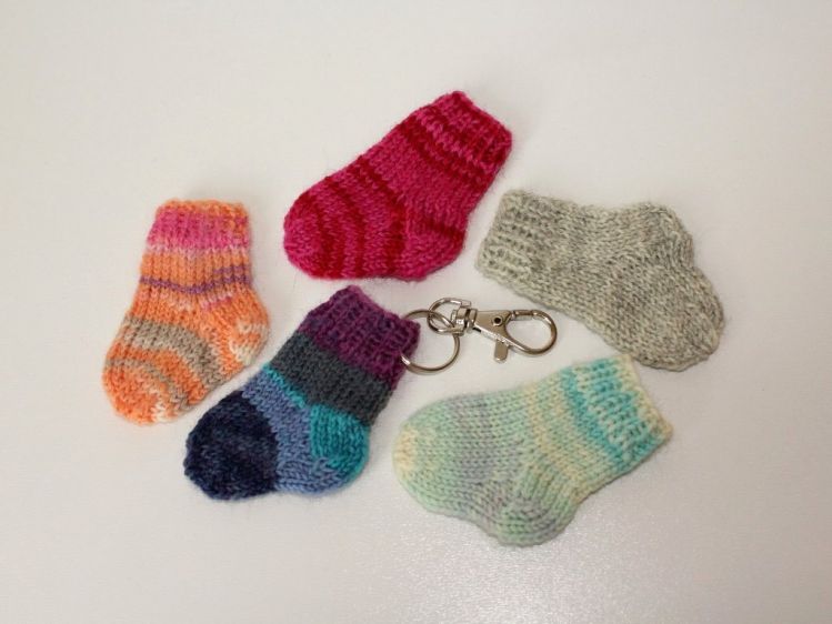 Strickanleitung Mini-Socke, Schlüsselanhänger, Taschenbaumler, Puppensocken