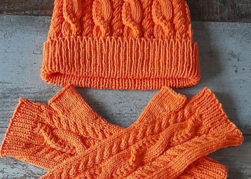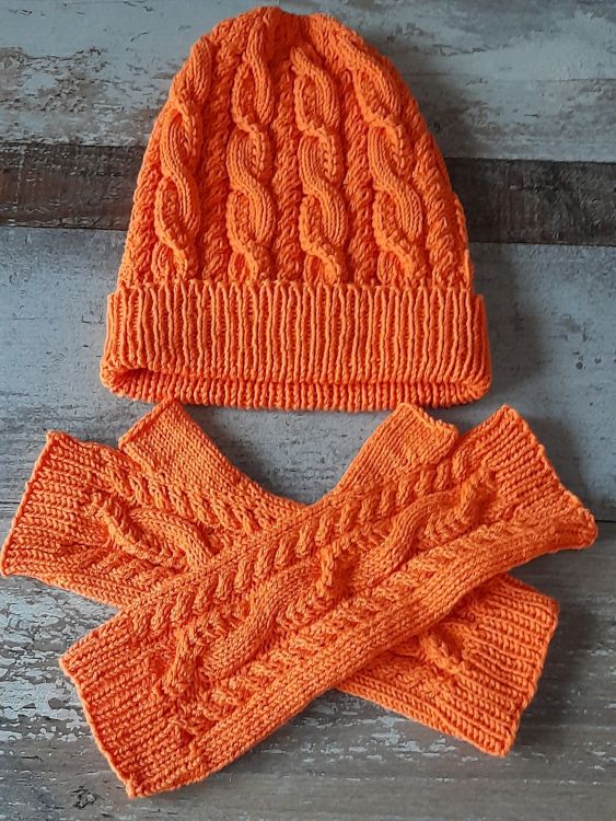 Strickanleitung - Mütze und Armstulpen "total verzopft"