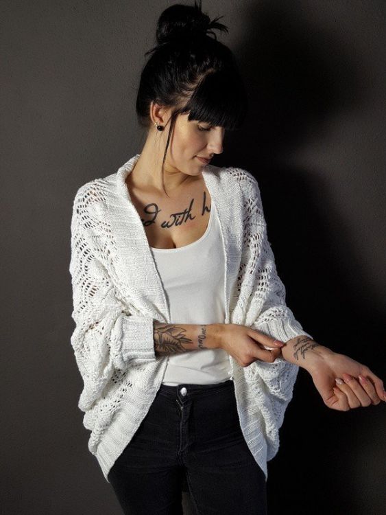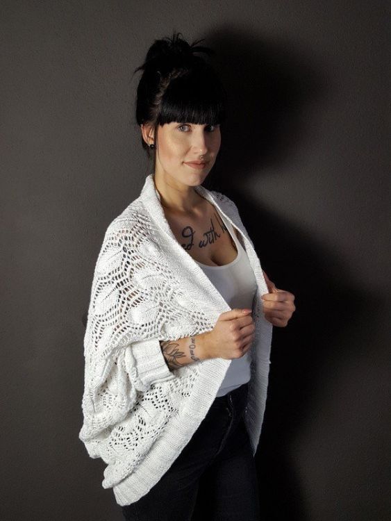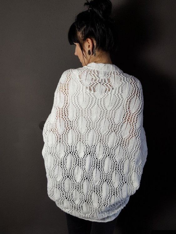 oversize 36 bis 44/46 Super leicht und kuschelig. Anleitung mit Strickschrift und in Tabellenform. Sehr viele Anleitungsbilder bis zur Fertigstellung.