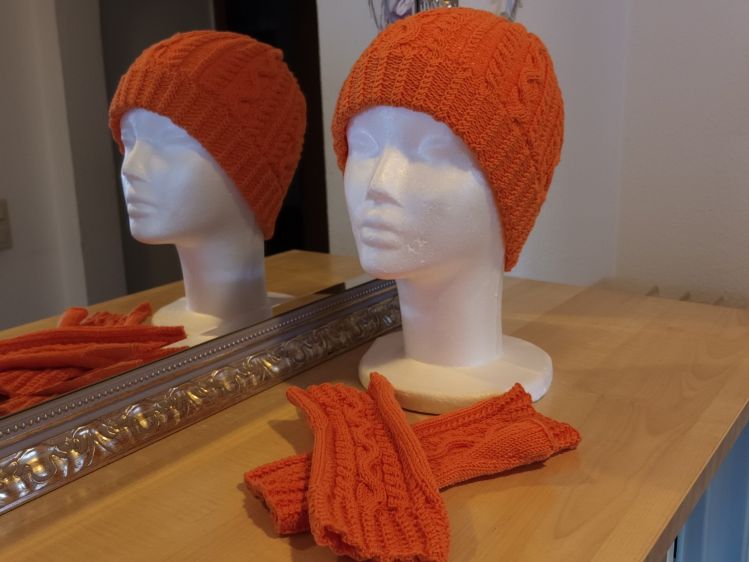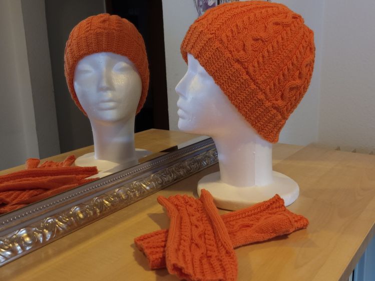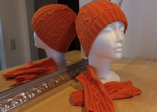 Nach dieser Anleitung kannst du dir ein Set aus Mütze und passende Armstulpen stricken. Das Muster besteht aus verschiedene Zöpfen und wird bei der Mütze rundum gestrickt, bei den Stulpen nur auf der Oberseite, damit sie sich auch angenehm tragen lassen. Die Mütze hat ein doppeltes Bündchen, was erstens die Ohren schön warm hält und zweitens könnte man noch ein Gummi einziehen falls nötig.