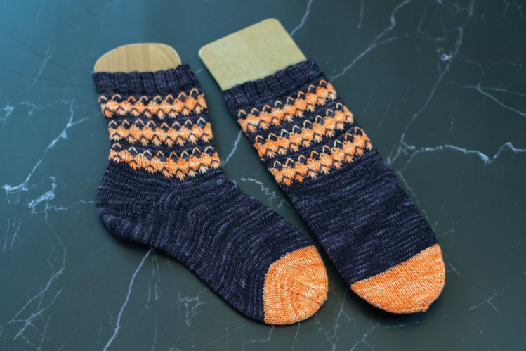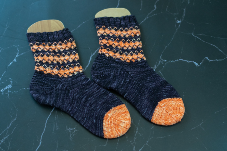 Die Anleitung besteht aus 2 Teilen, zum einen der Anleitung selbst, zum anderen einer Extra-Datei für Ferse und Spitze inklusive einer Sockentabelle.