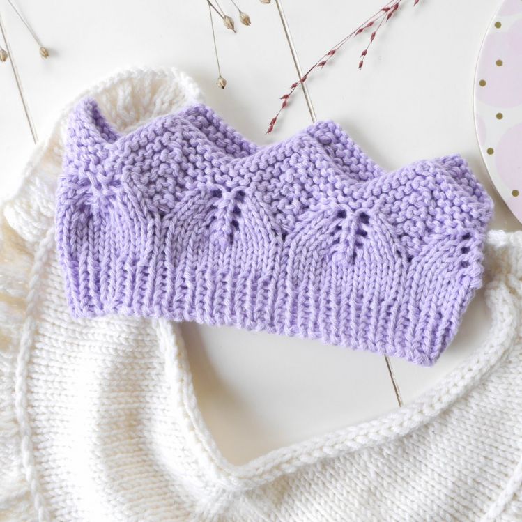 Das Stirnband Little Princess wird von oben nach unten wahlweise auf einer kurzen Rundstricknadel oder auf dem Nadelspiel gestrickt. Die Form des Krönchens entsteht durch das Muster bzw. durch Ab- und Zunahmen.