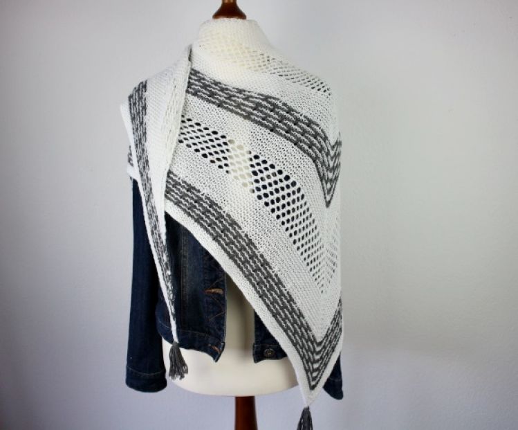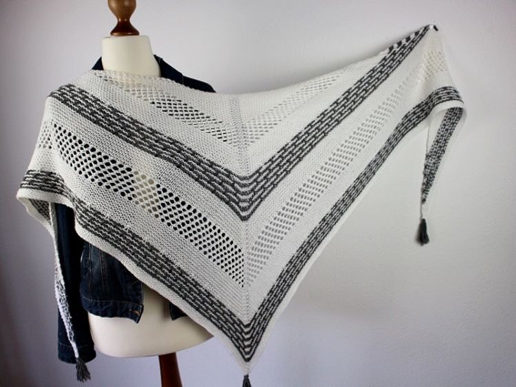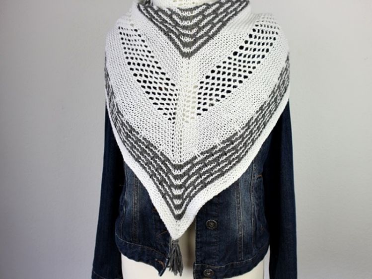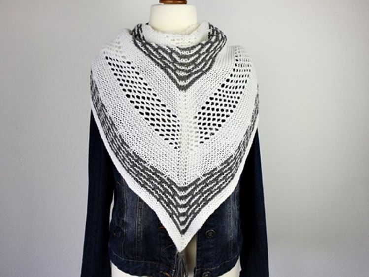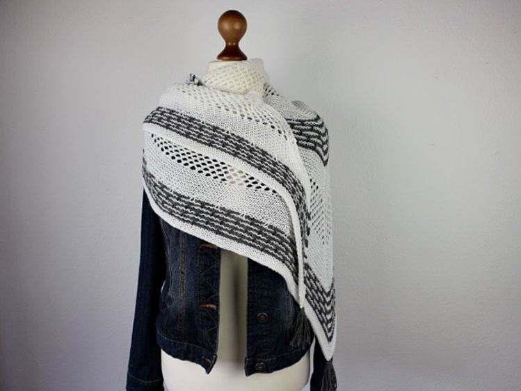 Verschiedene Muster, eine Kontrasfarbe und Stricksspaß pur! Das erwartet Euch bei dem Tuch Keyla.