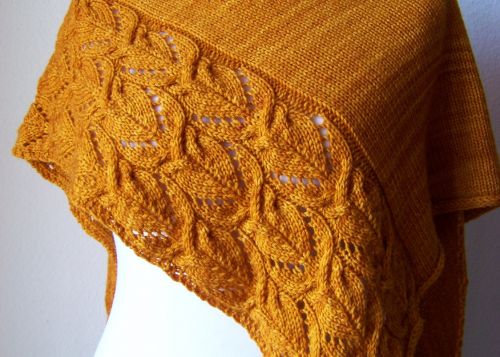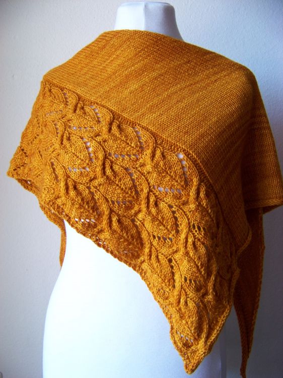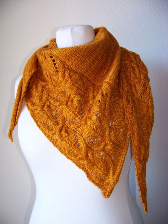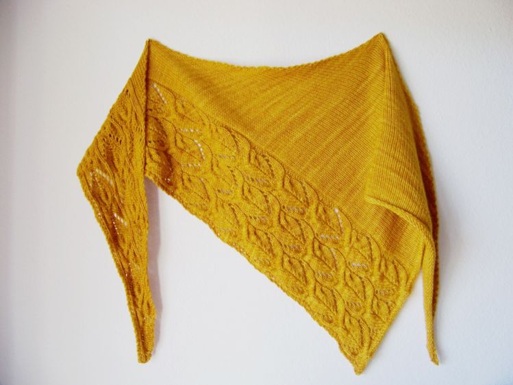 Das Tuch Sunflowers wird mit nur ganz wenigen Maschen begonnen und durch seitliche Zunahmen immer weiter vergrößert. Das schöne Lacemuster mit Verzopfung ist ein echter Hingucker. Passt perfekt zu Jeans oder auch etwas edleren Kleidungsstücken. Ich habe mein Tuch mit der herrlich, weichen Merinowolle von Malabrigo mit Nadelsärke 4.5 mm gestrickt. Aber auch mit dünnerer Wolle sieht das Tuch wunderschön aus. Ihr könnt einfach so lange weiterstricken, bis ihr kein Garn mehr habt, indem einfach ein Musterrapport angehängt wird. Ihr solltet auf jeden Fall verzopfen können und ein einfaches Lacemuster stricken können. Die Rückseiten werden immer nur mit linken Maschen gestrickt. Den Abschluß bildet ein I-Cord bind off, der in der Anleitung erklärt wird. Ihr könnt entweder nach einem Chart stricken oder nach geschriebenen Instruktionen. Der Herbst kommt in großen Schritten näher! Also lasst die Nadeln glühen und zaubert euch euer ganz persönliches und Individuelles Sunflowers Tuch!
