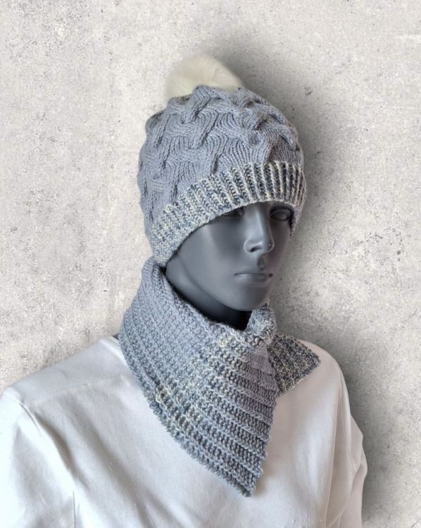 Strickanleitung Zopfmuster - Mütze und Schalkragen im Set, KU ca. 52 - 55 cm