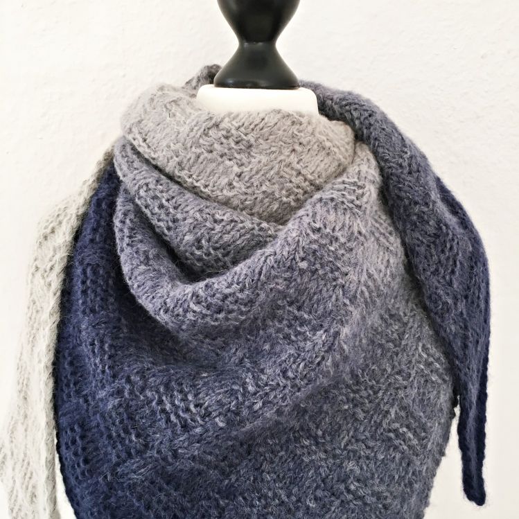 Das perfekte Anfängertuch – nur rechte und linke Maschen. Du benötigst ein Knäuel mit einem schönen Farbverlauf für dieses Projekt. Das Dreieckstuch wird mit großen Nadeln gestrickt und ist schnell fertig.