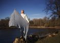 Das Tuch ist groß genug, um sich so richtig schön darin einzukuscheln – man kann aber auch die beiden Spitzen hinter dem Rücken zusammenknoten und es als Weste tragen.