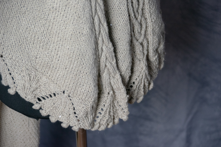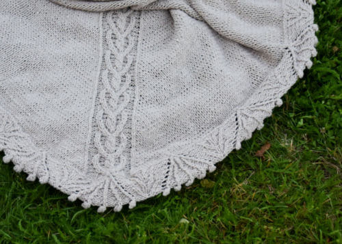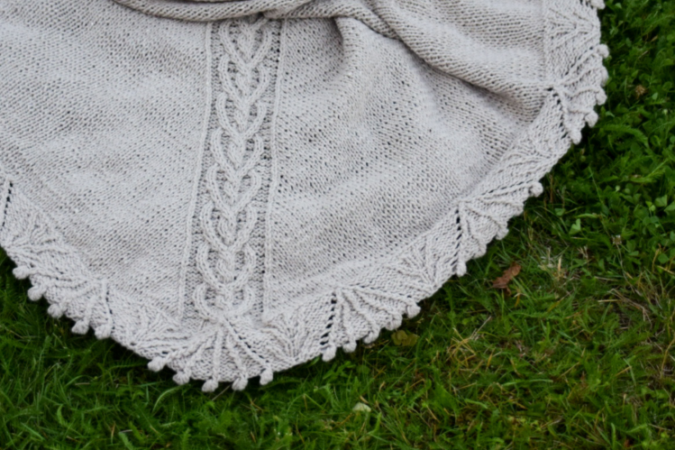 Das Tuch wird an der Borte begonnen und dann nach oben mit Abnahmen weitergearbeitet. Die ersten Reihen sind lang, aber werden mit der Zeit immer kürzer. So zieht sich das Projekt nicht, weil man immer schneller die Reihen beendet.