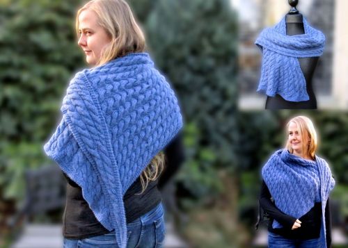 Es gibt zwei Versionen dieses Tuchs. Version 1 ist asymmetrisch und für Fortgeschrittene. Version 2 ist auch für ambitionierte Anfänger zu bewältigen, mit Grafiken am Anfang sowie einer schriftlichen Anleitung für jede einzelne Reihe.