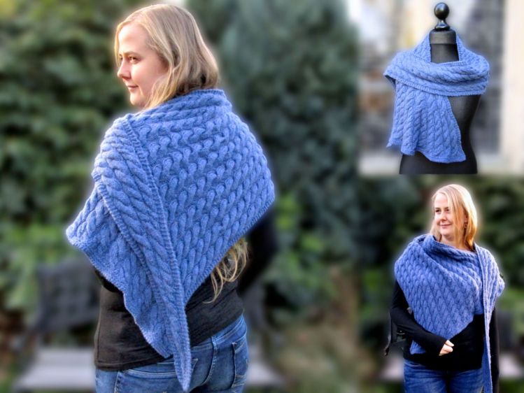 Anleitung enthält Beispiele für 3 Tücher mit 3 verschiedenen Nadelstärken: 4,5, 5,5 und 6 mm.