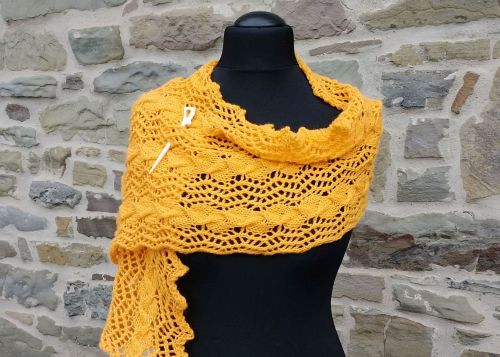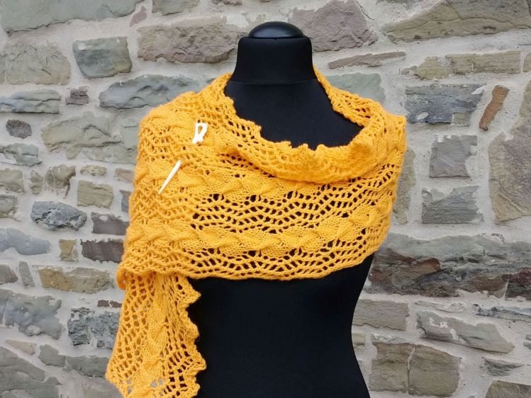 Neben genauen Anweisungen für einen Schal enthält die Anleitung auch genaue Hinweise, wie man eine Stola in beliebiger Breite stricken kann.