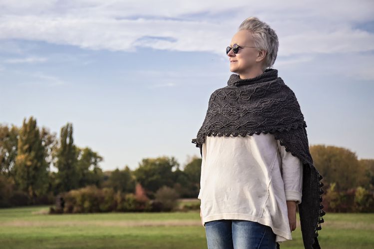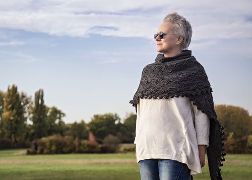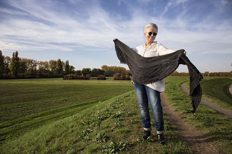 Das Tuch kann wie ein Schal getragen werden – oder Sie können es sich um die Schultern legen und damit jedem noch so kalten Wind trotzen. Durch die Form des Tuches kann es vielseitig kombiniert werden. Sowohl das Sternen-Muster im Mittelteil, das Zopfmuster in der Borte und die Zacken am Rand des Tuches sind echte Hingucker, die zusammen das Tuch zu etwas ganz besonderen machen.