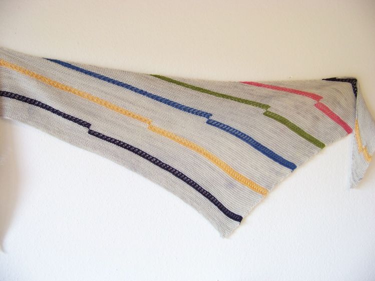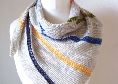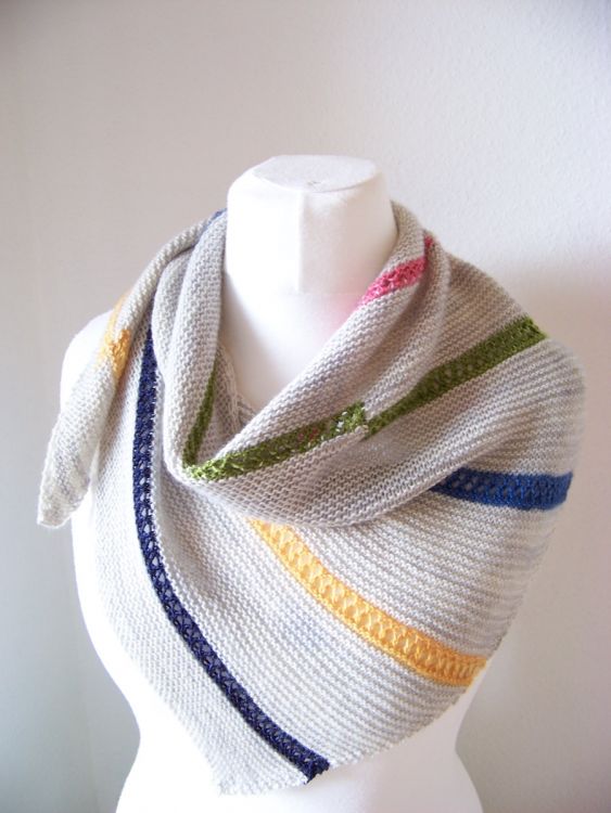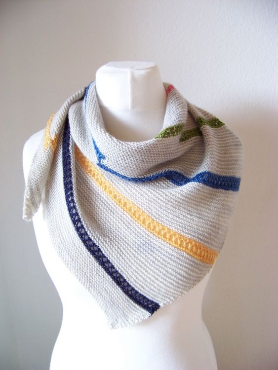 Ihr habt noch Wollreste in eurem Strickkorb und wisst nicht genau, was ihr damit anfangen sollt. Hier stelle ich euch ein Projekt vor, das Ideal dafür wäre. Ein bisschen Lochmuster, etwas Interasientechnik und für den Fernsehabend der kraus rechts gestrickte Teil. Es ist immer interessant, dieses Tuch zu stricken.