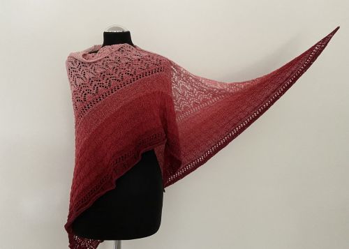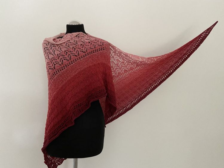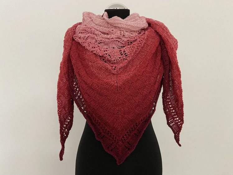Lacémuster, in Kombination mit rechts-links-gestrickten Muster, machen dieses Tuch zu einem