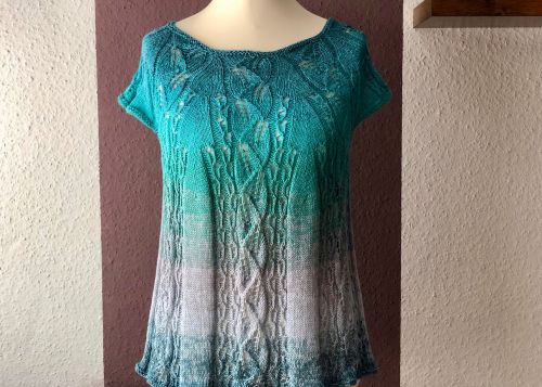 Die luftige Tunika wird in Runden von oben nach unten gestrickt. Nach unten hin wird die Tunika etwas ausgestellt, so dass sie jede Figur umschmeichelt..