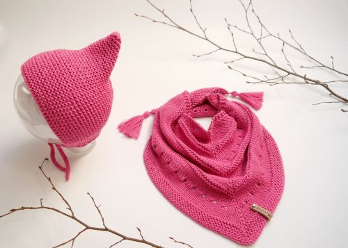 With this lovely set the kiddies are well-equipped on colder days. A perfectly fitting bonnet keeps the head and the ears warm and the cute scarf takes care for baby´s neck. These unicolored accessories are very good combinable with any other cloths. And your Sweetie will look and feel so good!