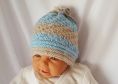 Hier wurde Baby Paint von Katia verwendet (80 % Polyacryl, 20 % Wolle). Diese Wolle gibt es auch in Rosatönen für Mädchen. Ein Knäuel Wolle ergibt 3 Mützen.