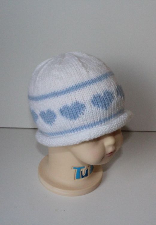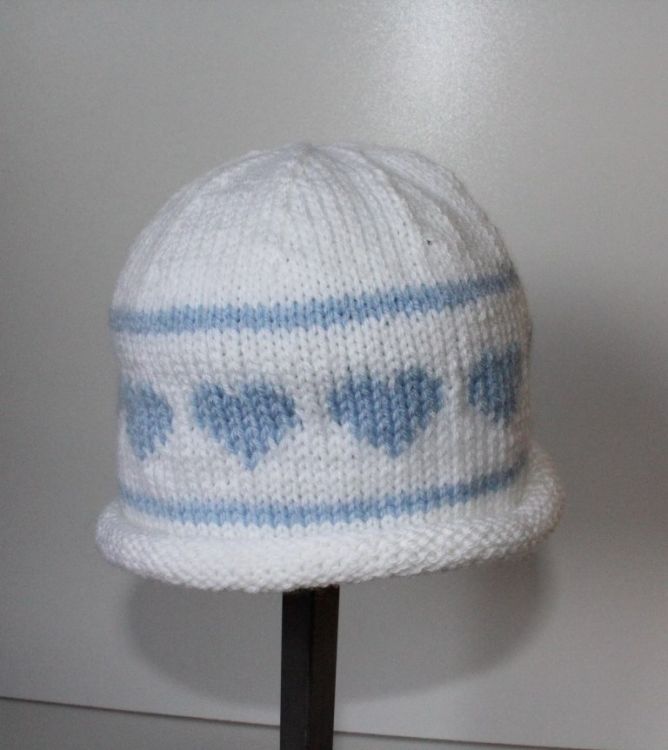 Strickanleitung Babymütze "einfach herzig", ca. 4 -10 Monate Für diese Babymütze werden lediglich ca. 30 g Wolle mit einer Lauflänge von 185 m / 50 g benötigt, wie z. B. Bravo Baby Smiles von Schachenmayr Passend für ca. 4 - 10 Monate
