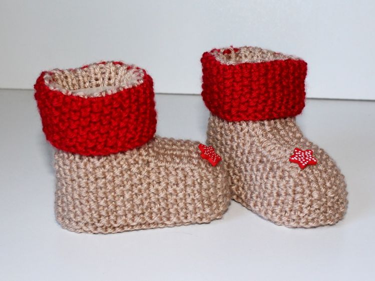 ....ideal für Anfänger sind diese Babyschuhe im Perlmuster.