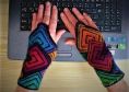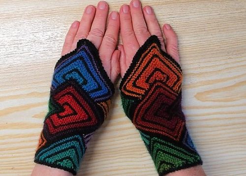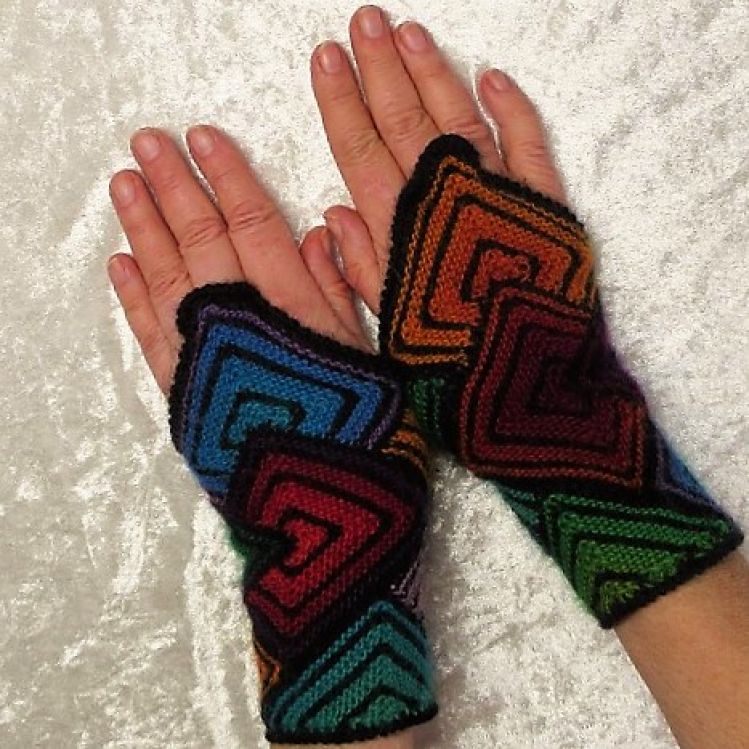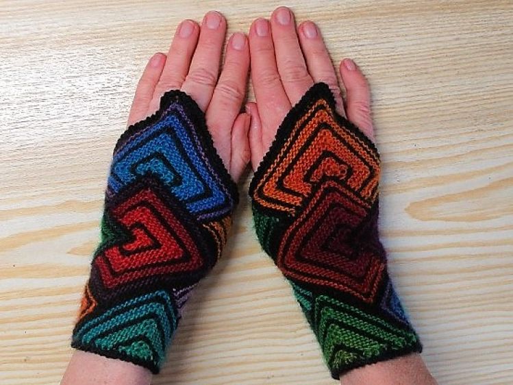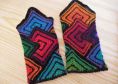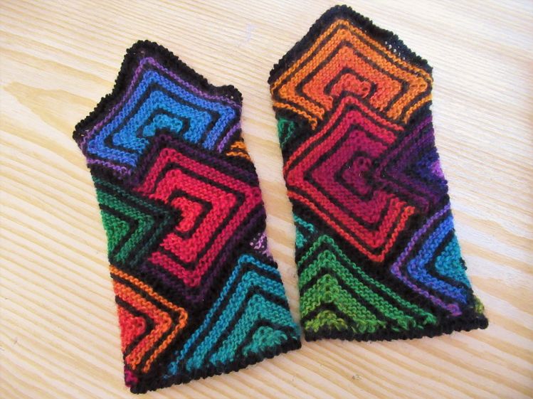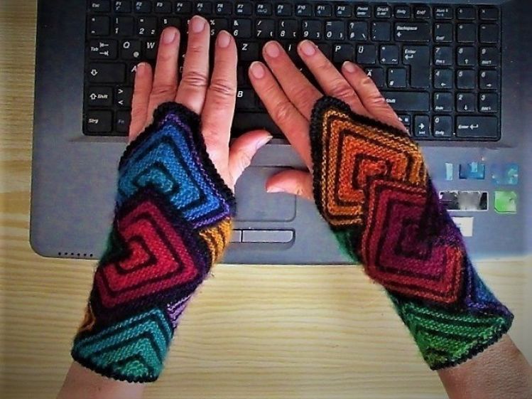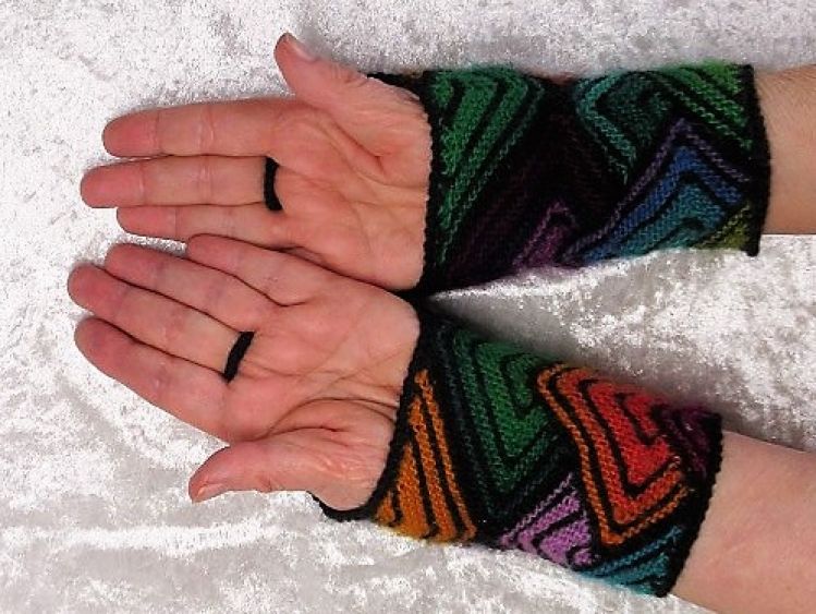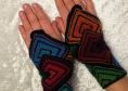 Auch im Büro nie mehr kalte Hände! Die Pulswärmer in Patch-Technik halten warm und sehen chic aus. Sie lassen sich aus Resten von Sockenwolle schnell nacharbeiten.