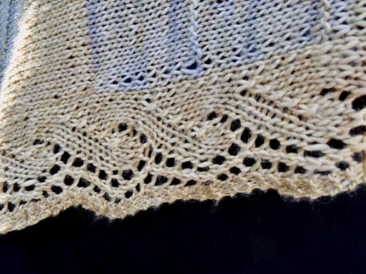 Am entgegengesetzten Rand wird ein leichtes Lacemuster als Kontrast gestrickt.