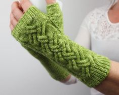 Strickanleitung Handstulpen mit Zopfmuster Avocado